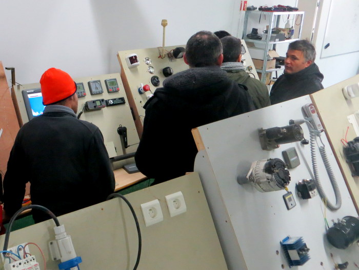 C'est d'abord sur le plateau Electricité/Electronique de l'INB que les stagiaires sont formés, avant de mettre en pratique leur formation sur des supports réels, au port de Concarneau.